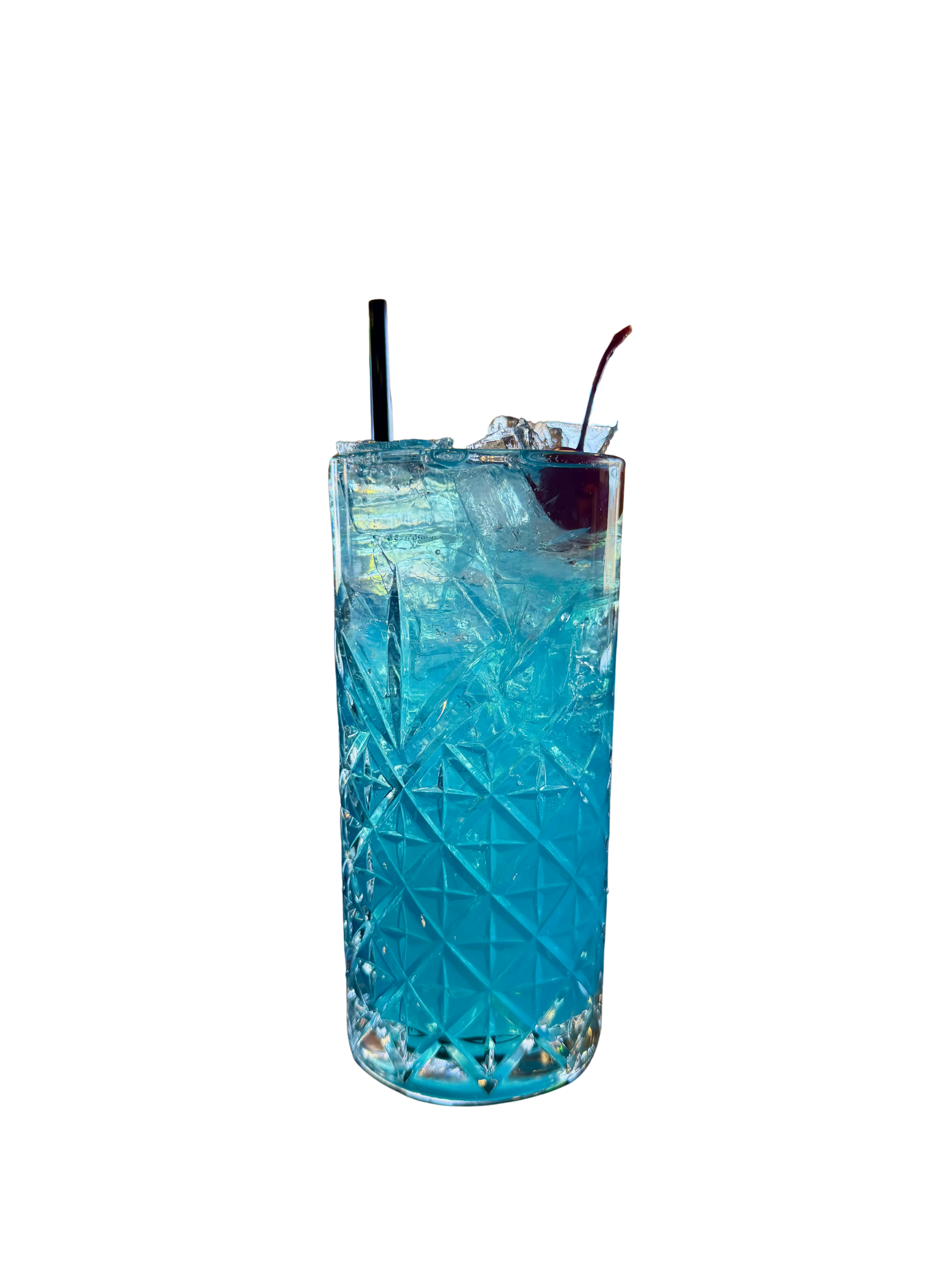Rum, gin, vodka, tequila, blue curaco, sweet & sour, Sprite.