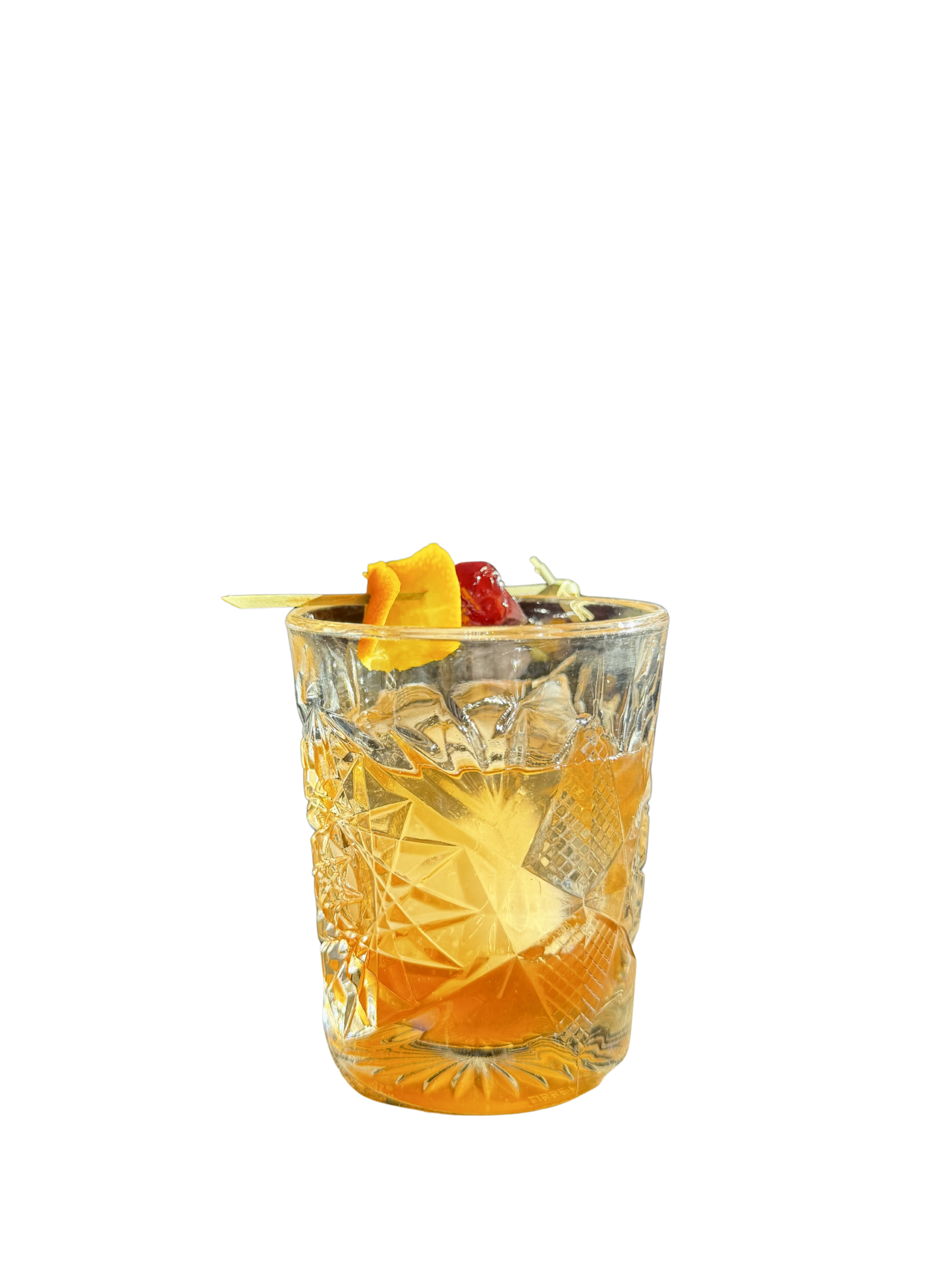 High West Bourbon, Bitters, Orange Bitters, Cherry Juice, Sugar Cube. Orange Peel & Cherry Garnish.